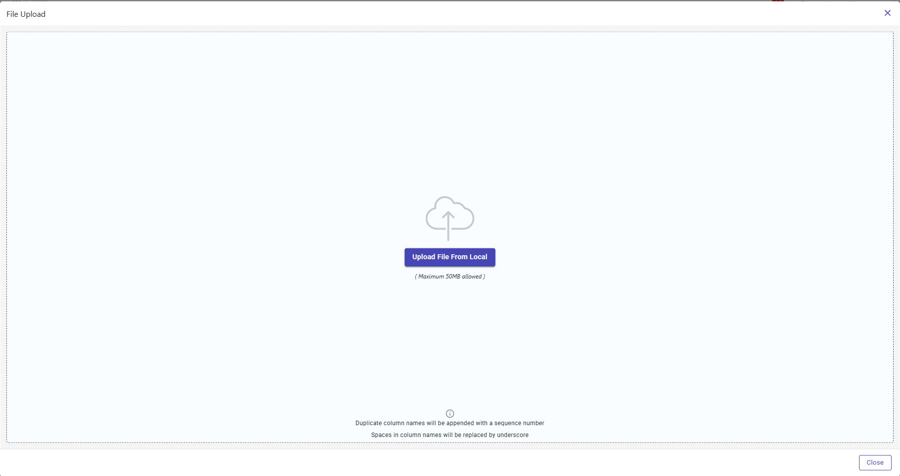 Click Upload File From Local. You can upload maximum file size of 50MB.