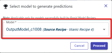Select the model that you want to use to generate predictions at the scheduled frequency.