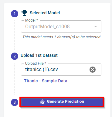 When you create a prediction job, the platform automatically performs data preprocessing and feature engineering on the uploaded dataset. This step ensures the data is refined before being fed into the trained model, improving the accuracy of predictions.
