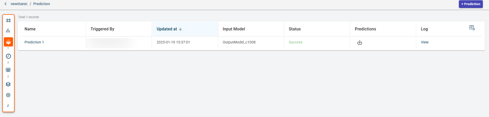 Click the logs icon to check for the errors if the prediction run failed to execute. You can also view logs for the successfully executed prediction jobs.