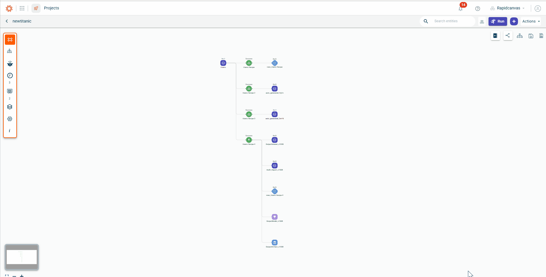 Click Compare to compare the canvas of this prediction scheduler with the canvas of the project to notice the differences. You can see the difference between both the canvases side by side.