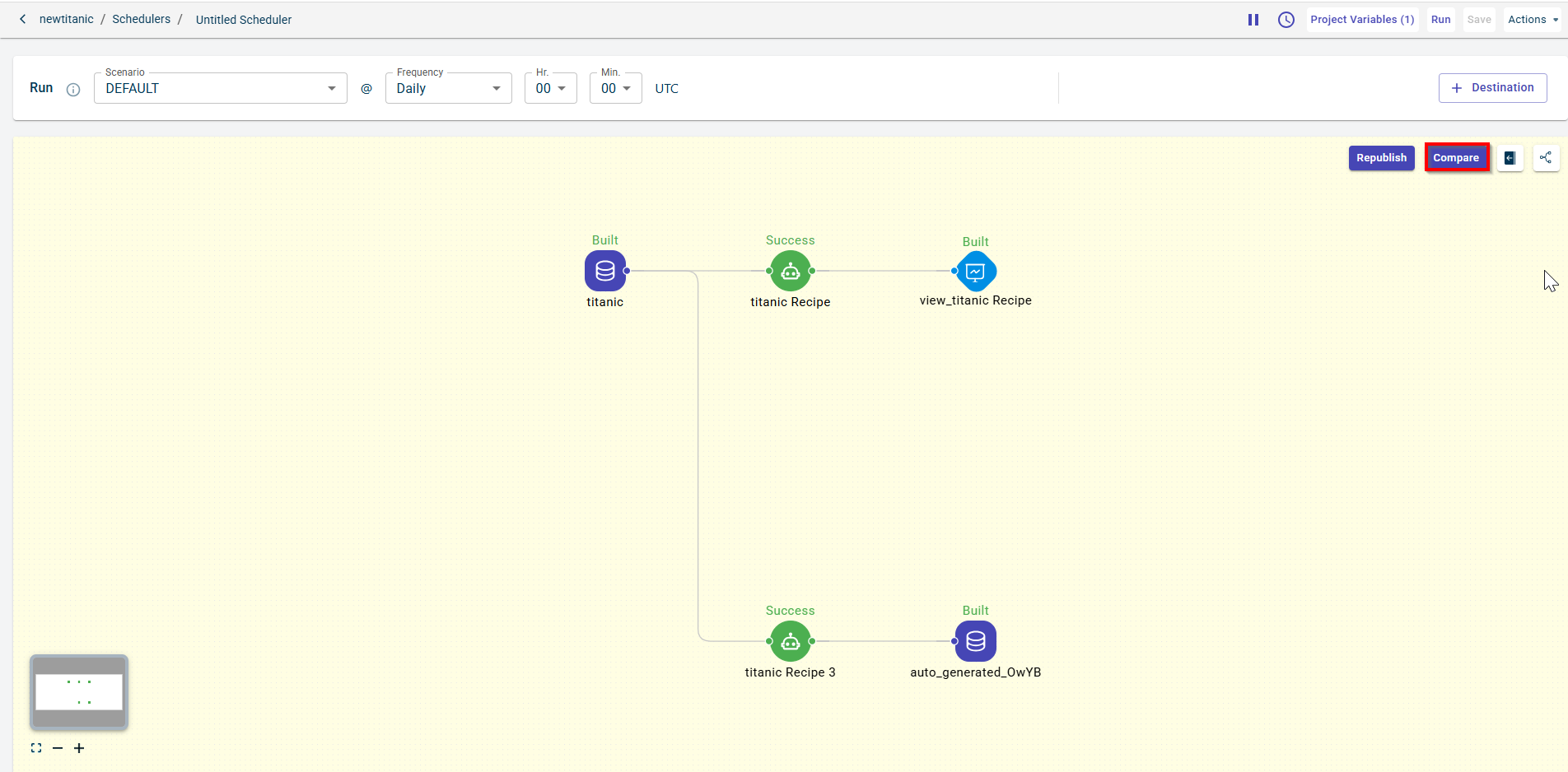 Click Compare to compare the canvas of this scheduler with the canvas of the project to notice the differences. You can see the difference between both the canvases side by side.
