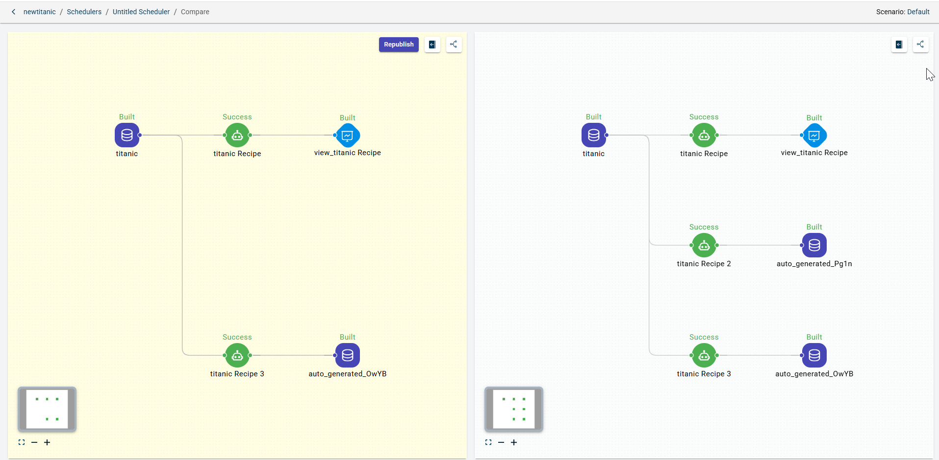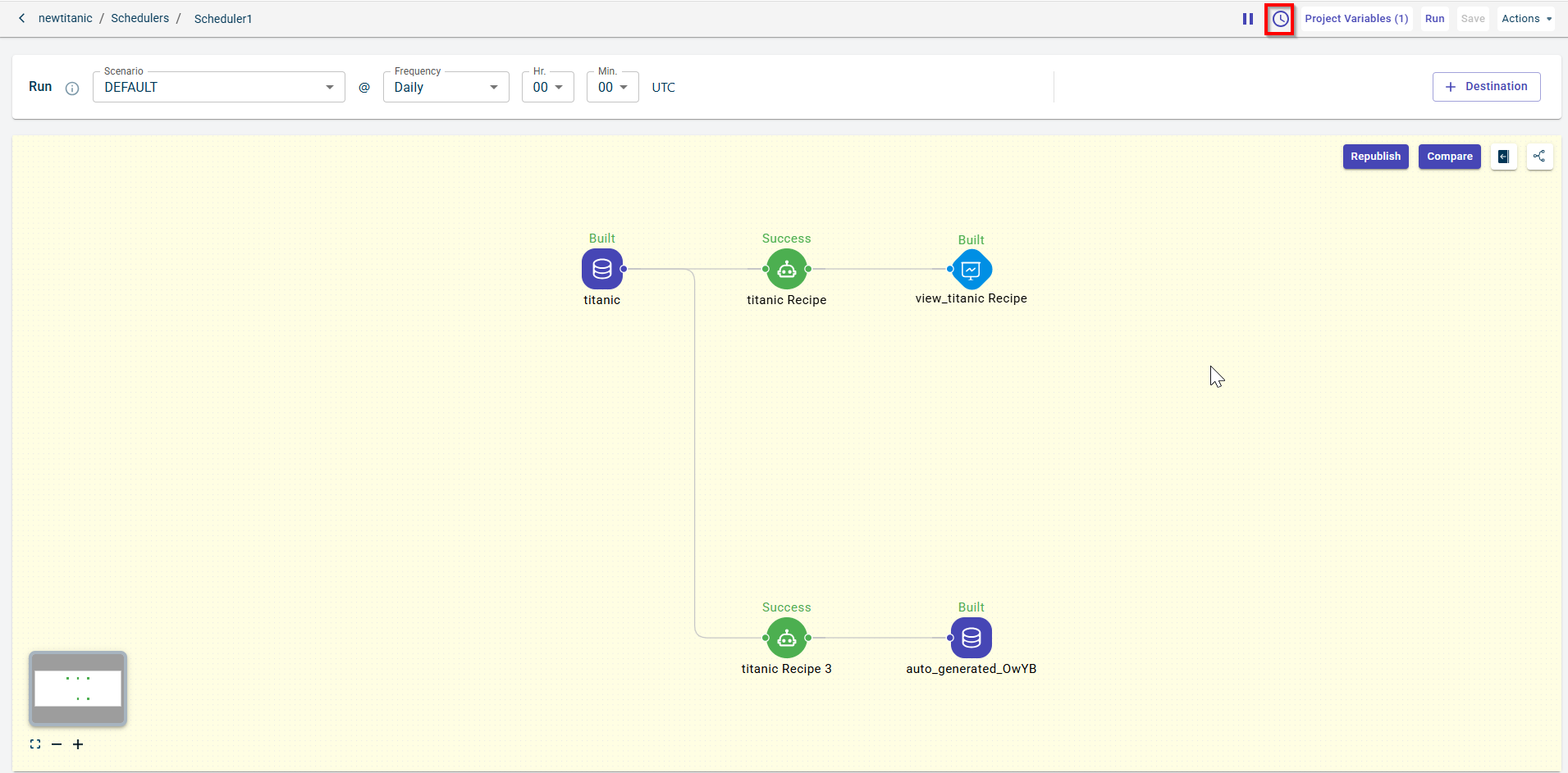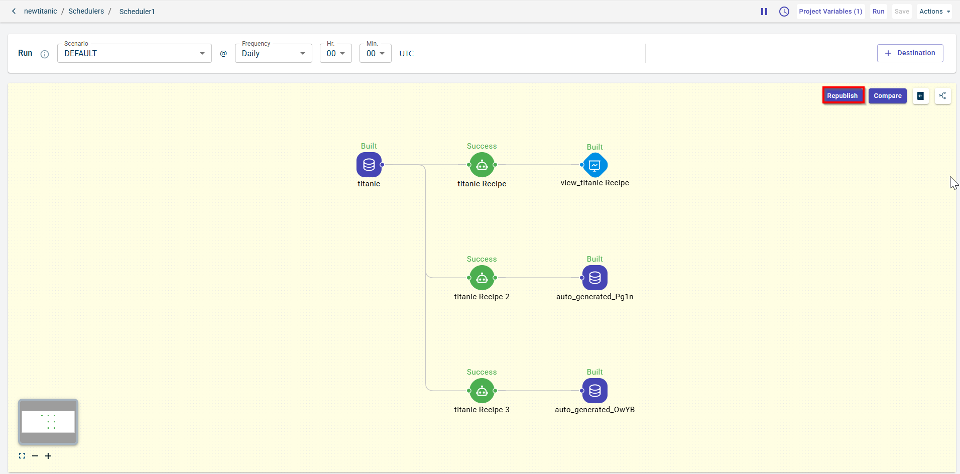 If you notice the canvas of the scheduler is not up-to-date, you can click Republish to fetch the latest canvas of the project to update the changes.