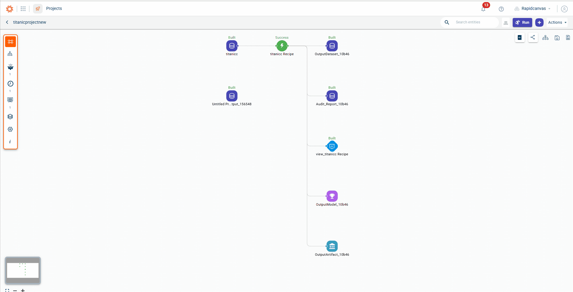The canvas generated after running the job. Click to view the canvas on which the run job was performed.