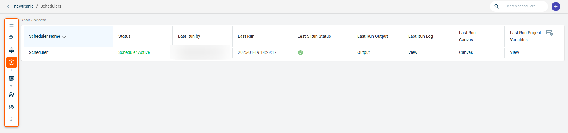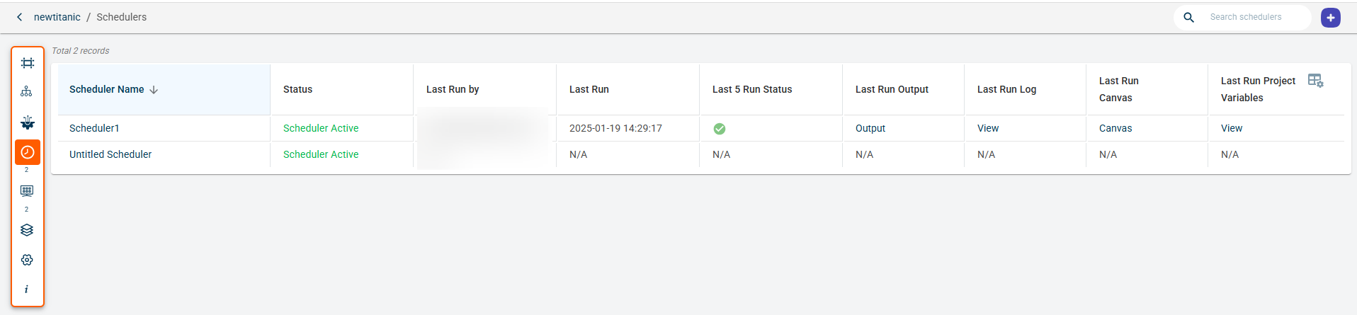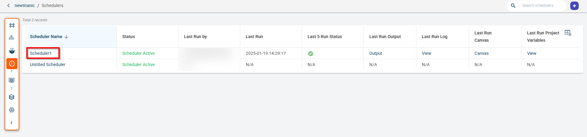 Select the project and click scheduler to view the list of schedulers created within this project.