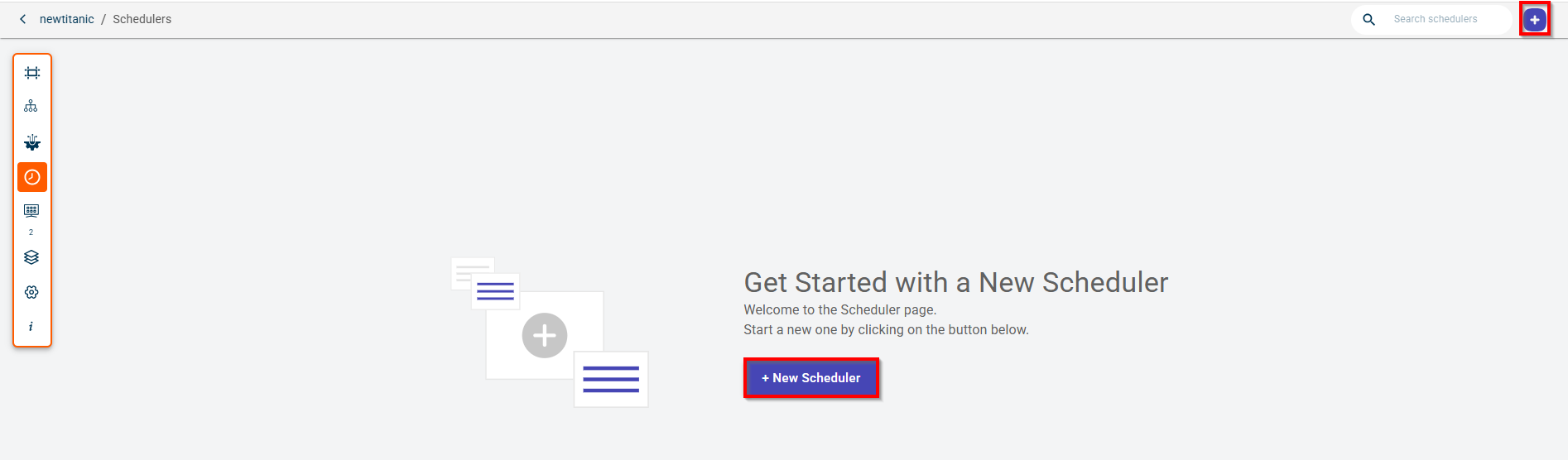 Click the +New Scheduler option to create a scheduler. However, you can only view this option when there are no schedulers created in this project.