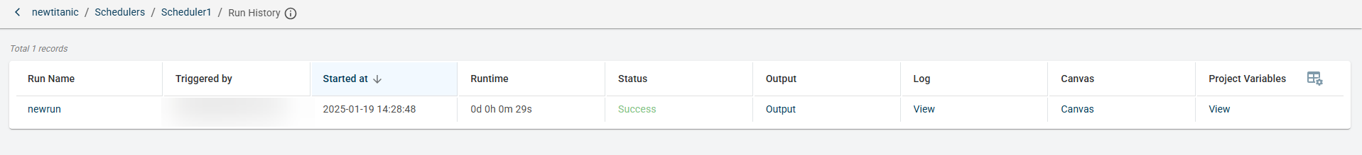 Click the scheduler name under Scheduler Name column in the table to navigate to the respective Scheduler page and click the Run History icon.