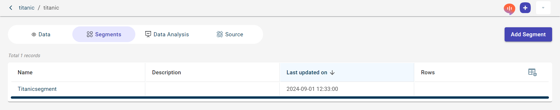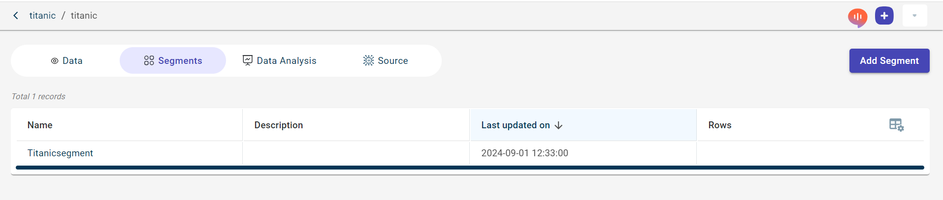 Click the Segments tab to view the list of segments created in this project.