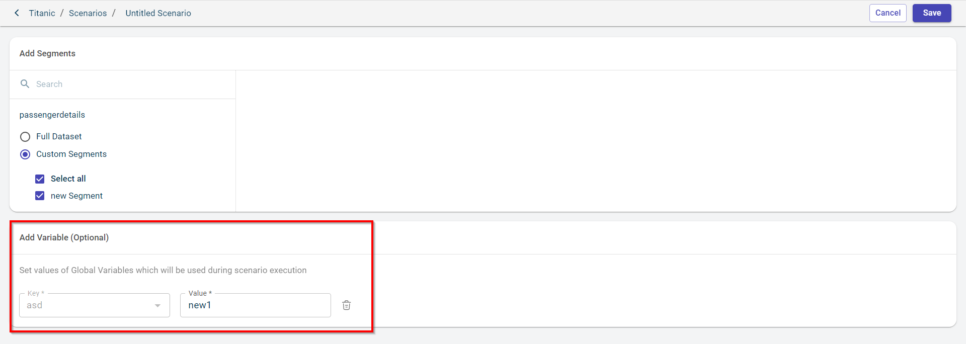 Click SAVE to save the configured segment to this scenario.