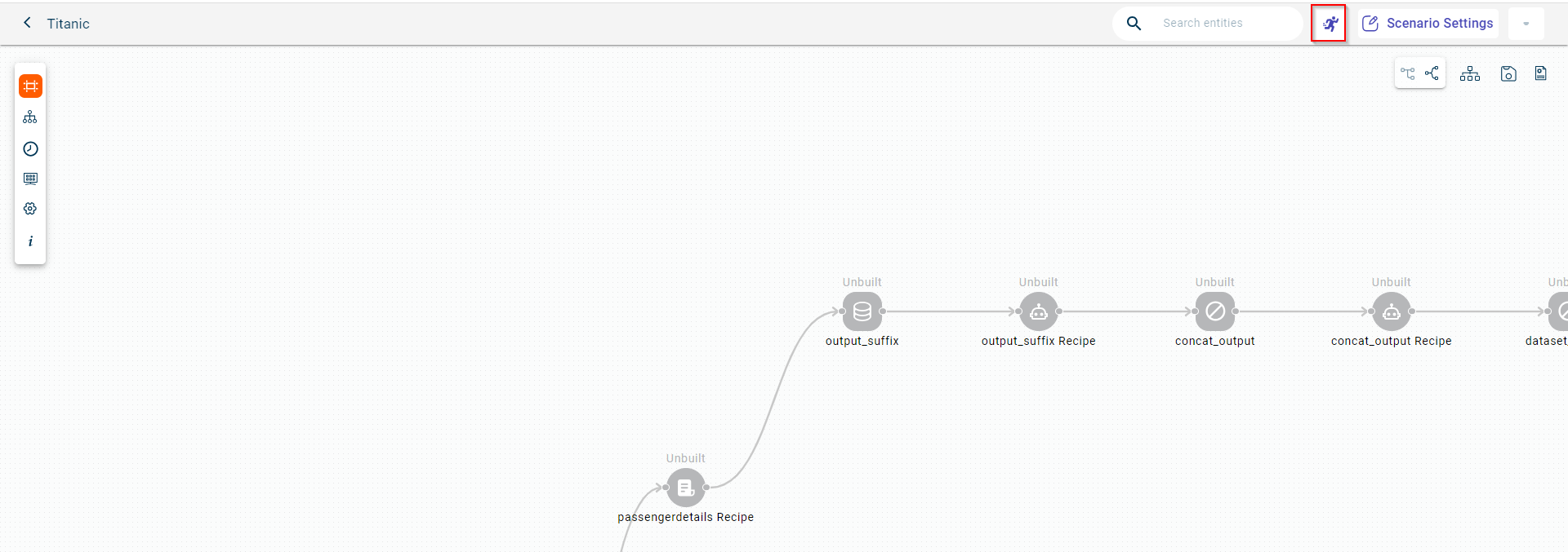 Click the run icon to run the scenario. Until you run the flow, all the components or blocks on the pipeline will remain in the unbuilt state.
