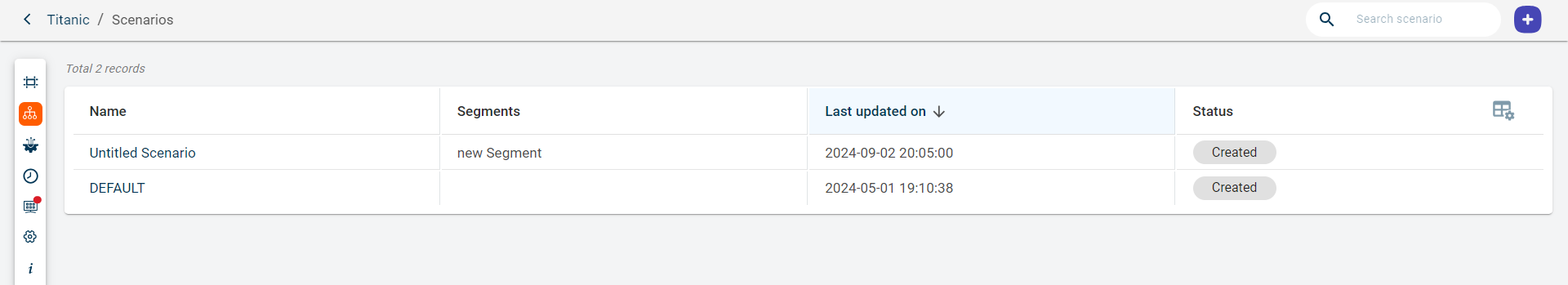 Search for a specific scenario by specifying the scenario name in the search bar.