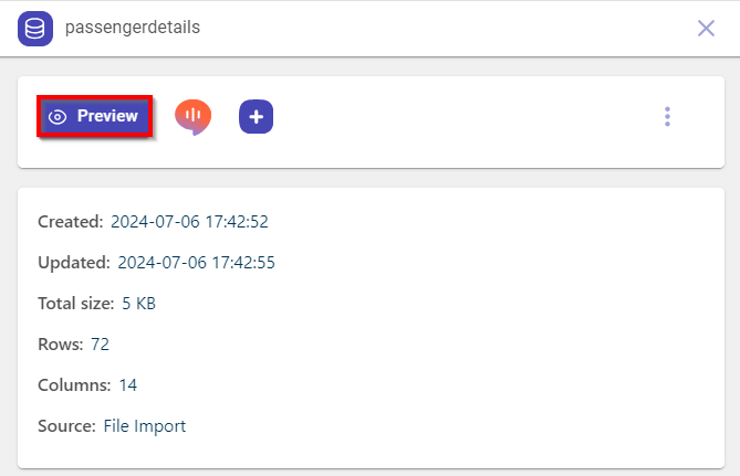 Select the dataset block that you have uploaded onto the canvas. This opens the pull-out window.