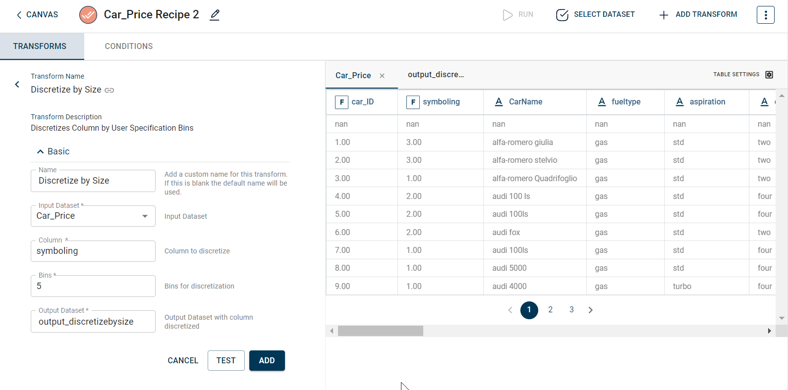 recipe_Discretize_by_Size= project.addRecipe([car_data, employee_data, temperature_data, only_numeric], name='Discretize by Size')