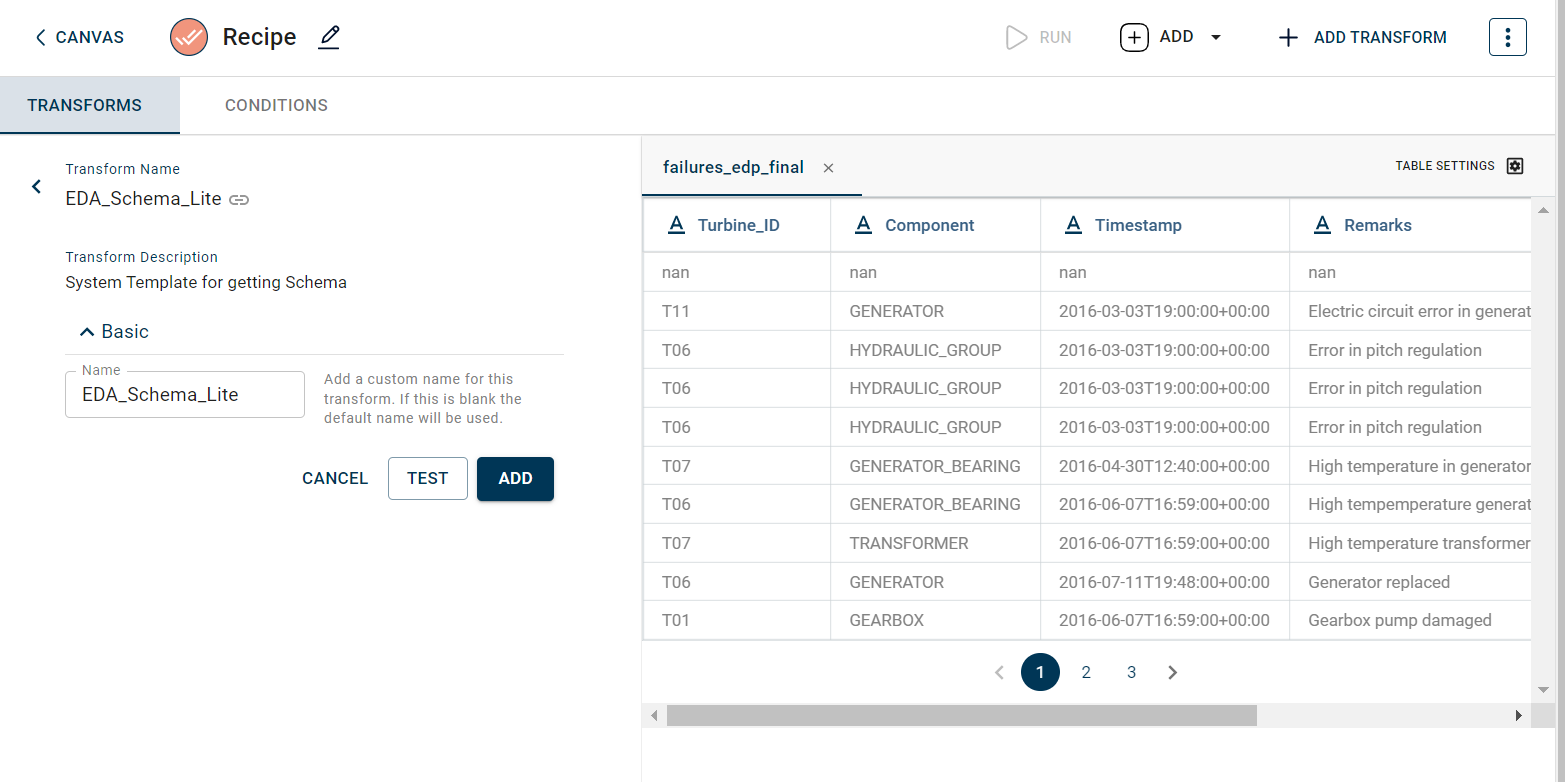 The output after running the EDA schema lite transform on the dataset appears as below: