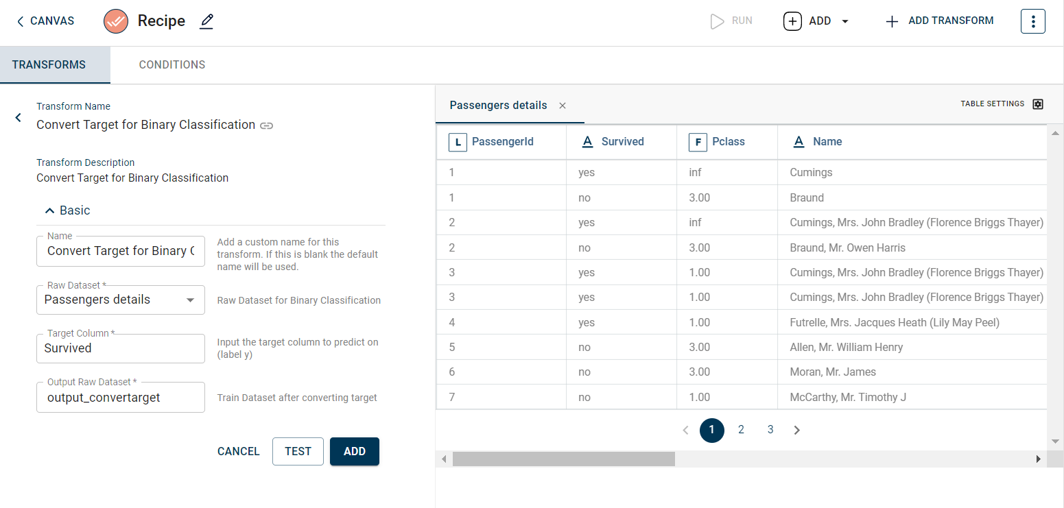 By default, the transform name is populated. You can also add a custom name for the transform.
