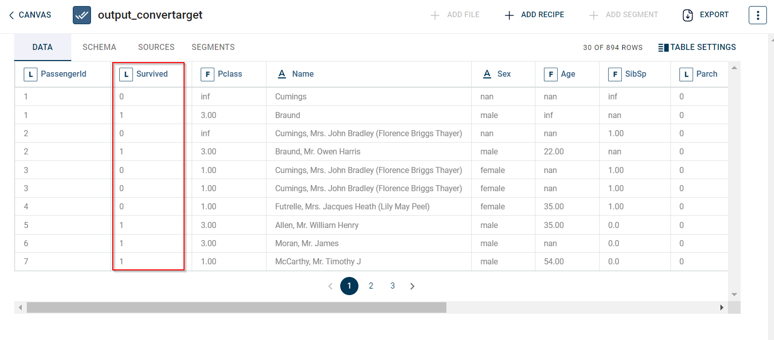 The file name of the input dataset. You can select the dataset that was uploaded from the drop-down list to be filtered based on the given column value.(Required: True, Multiple: False)