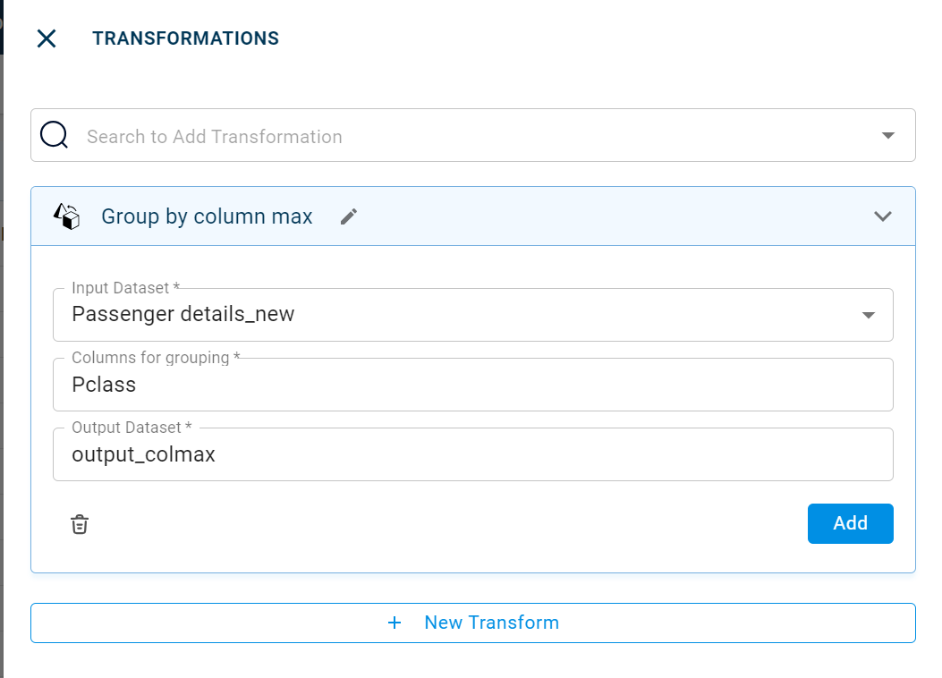 By default, the transform name is populated. You can also add a custom name for the transform.