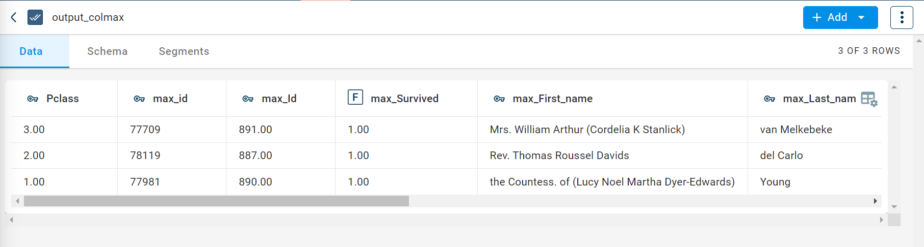The following is the code snippet you must use in the Jupyter Notebook editor to run the Group by column max transform: