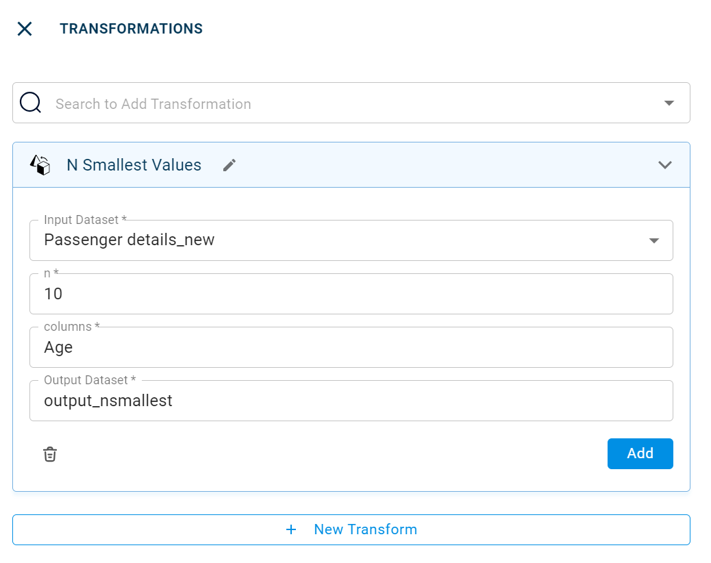 This transform returns the first n smallest values of a specific column in the ascending order.