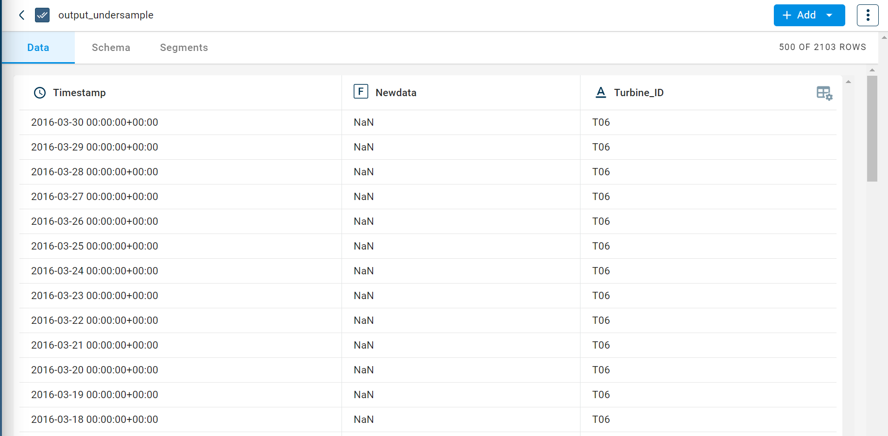 The output after running the Undersample timeseries data transform on the dataset appears as below.