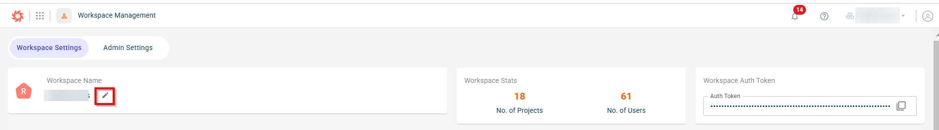 Click the Edit icon to change the workspace’s name, on the Workspace Settings tab.