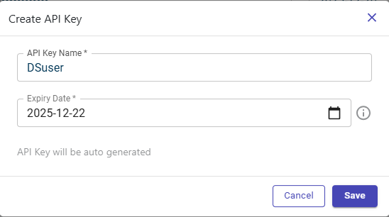 Click Save. The system will generate an API key, which you can either copy immediately or download as a markdown file for safekeeping.