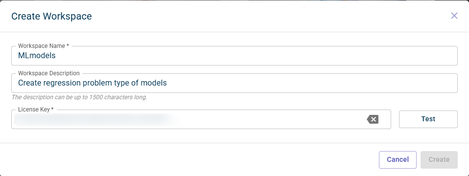 A valid license key to create a workspace. This license key is provided by the service provider.