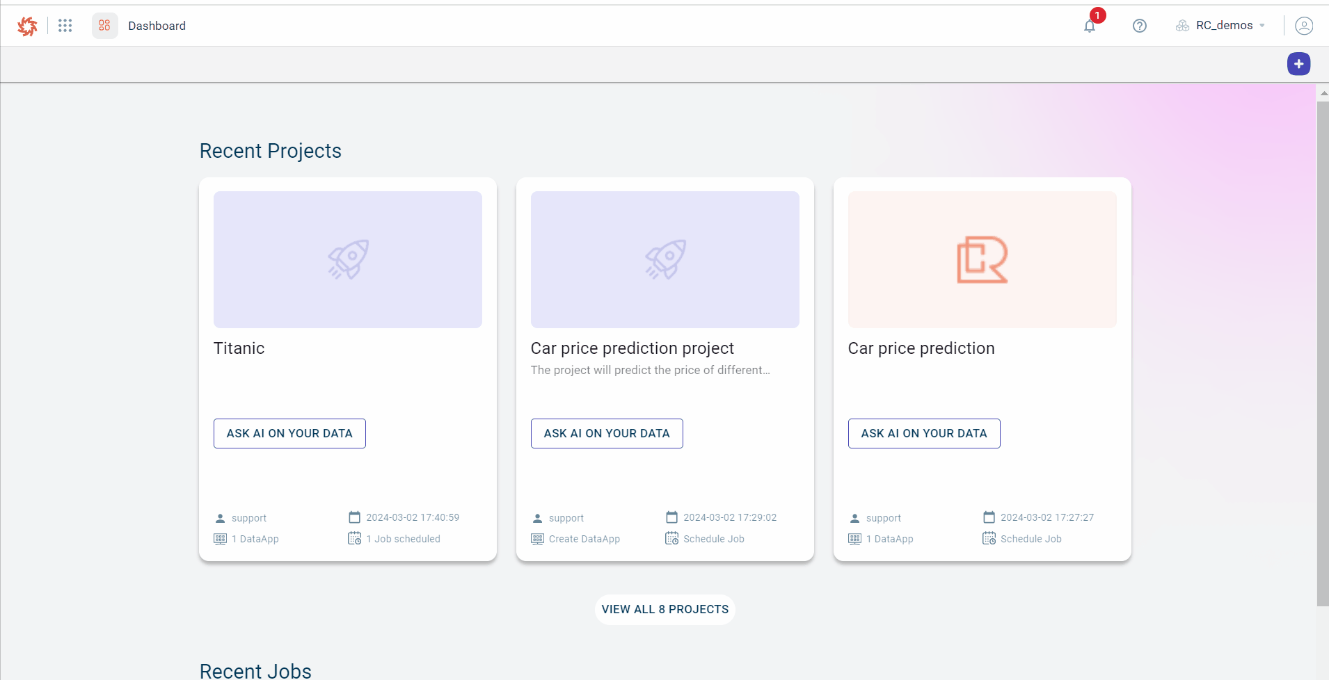 Business User - User with this role can access projects, DataApps, AI-assisted recipe, Rapid Model Recipe, and Dataconnector modules only. These users cannot create scenarios, segments, workspaces, and add models and artifacts. Also, the global variables in projects are not visible. They cannot set the recipe timeout period for AI-assisted and Rapid model recipes.